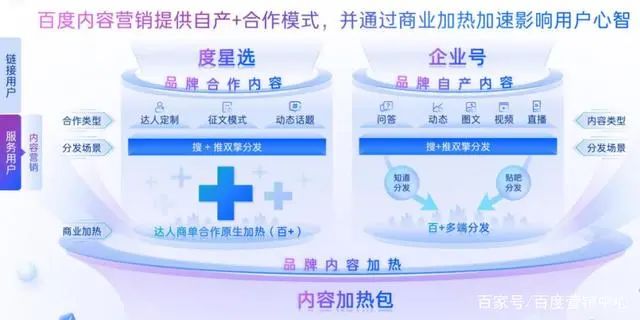 在前鏈路用戶沉淀部分,百度營銷提供“自產(chǎn)+合作”模式,并通過“百+”商業(yè)加熱加速影響用戶心智,打造從內(nèi)容生產(chǎn)到加速分發(fā)的一體化企業(yè)營銷新場景,為整個(gè)鏈條起到了導(dǎo)流獲客、流量沉淀的作用。