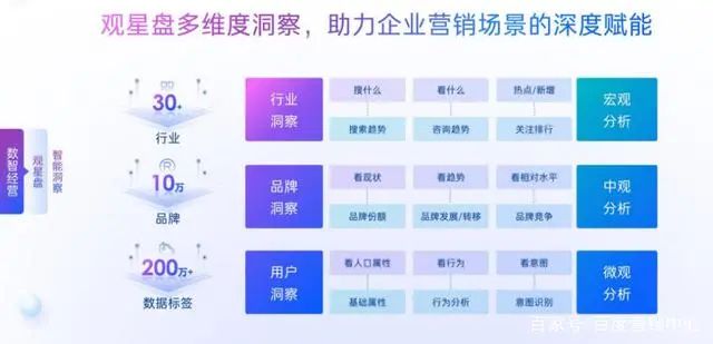隨著媒介的碎片化和信息的粉塵化,可量化的精準(zhǔn)營銷已成為大勢所趨,而百度的全鏈營銷數(shù)據(jù)引擎觀星盤,基于百度AI技術(shù)以及大數(shù)據(jù)能力,為品牌輸出全鏈路數(shù)字營銷解決方案。