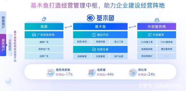 在后鏈路經(jīng)營轉(zhuǎn)化部分,百度營銷通過基木魚智能商家經(jīng)營平臺,為企業(yè)提供從營銷建站、線索轉(zhuǎn)化、商品閉環(huán)到用戶運(yùn)營的一站式生意經(jīng)營全鏈解決方案,打造企業(yè)經(jīng)營管理中樞,助力企業(yè)建設(shè)閉環(huán)經(jīng)營陣地。