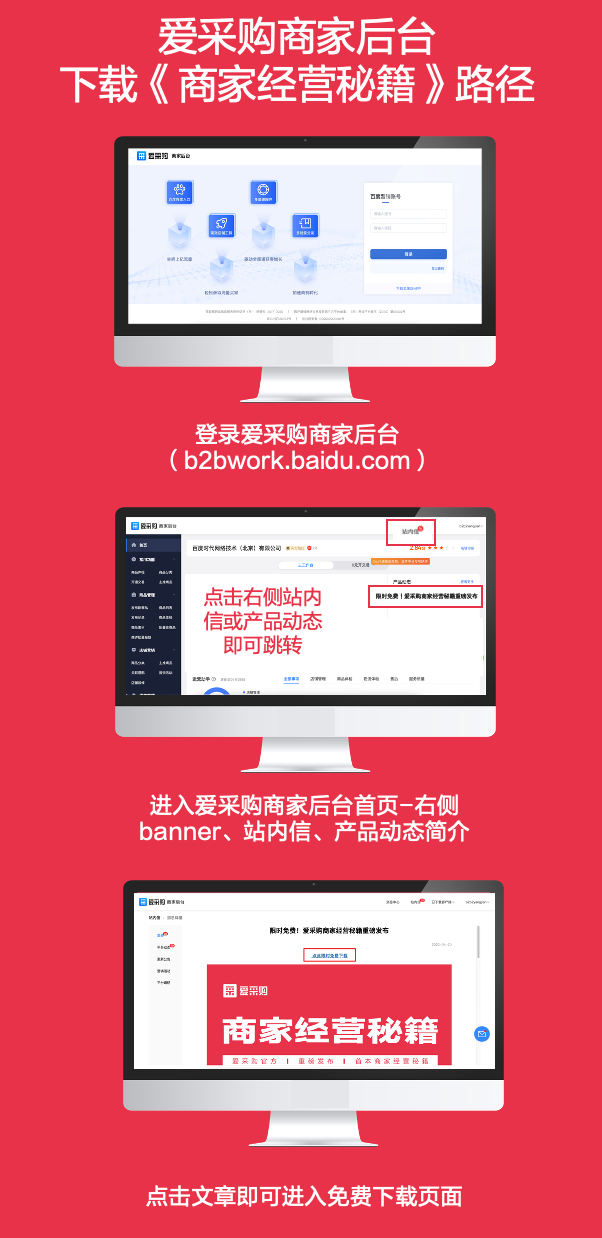 入駐百度愛采購的商家如何高效、快捷運營好店鋪?面對不同行業發展新趨勢,商家又該如何構建企業品牌形象,實現店鋪運營能力倍增呢?這些問題統統幫你解決,愛采購正式發布《愛采購商家經營秘籍》,助力商家8天玩轉愛采購~