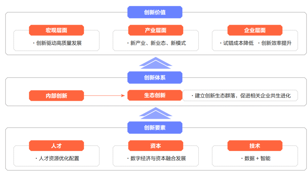 2021年的 “十四五規(guī)劃和2035年遠景目標綱要”中明確提出“加快數(shù)字化發(fā)展,建設數(shù)字中國”。在數(shù)字經(jīng)濟3.0時代,企業(yè)更應該從創(chuàng)新價值、創(chuàng)新體系、創(chuàng)新要素三大方面提升企業(yè)創(chuàng)新改革,響應政策號召。